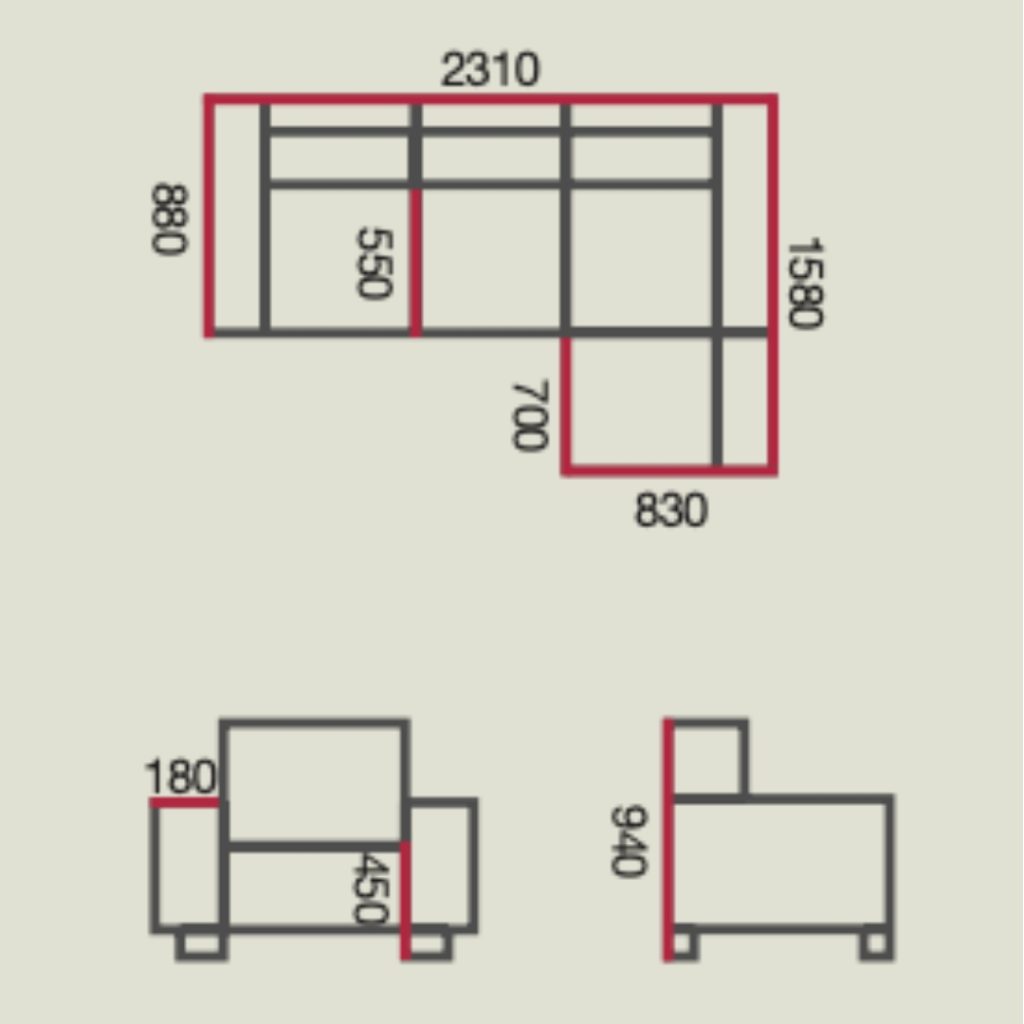 - Product overall size L230 x D158 x H94cm
