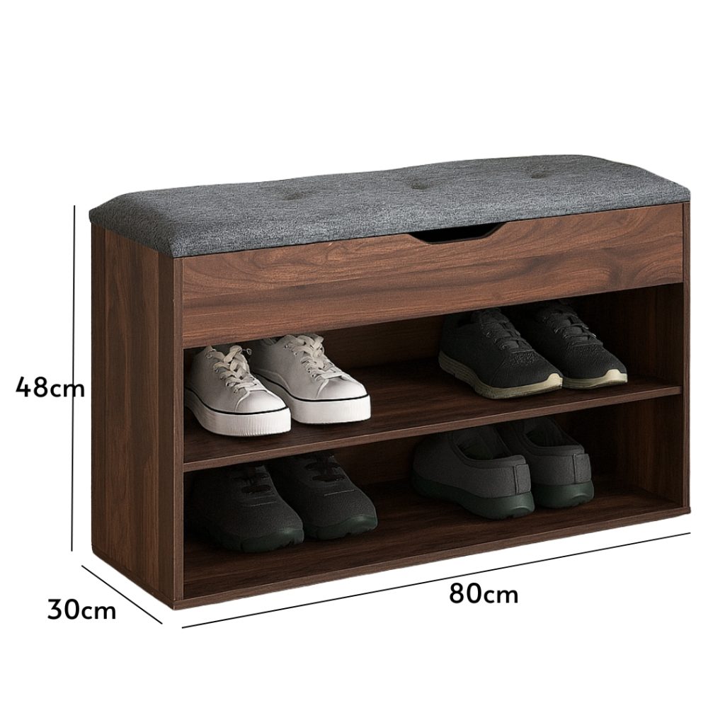 - RUKI 80cm Storage Shoe Bench-Walnut