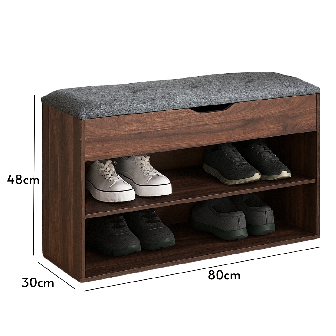 RUKI 80cm Storage Shoe Bench-Walnut