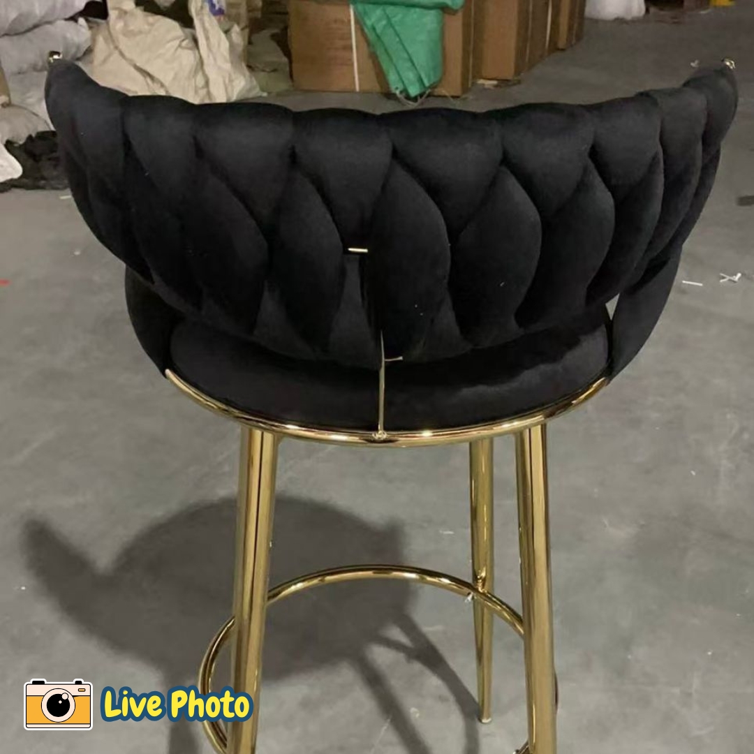 bar chair in velvet fabric seat with metal frame
