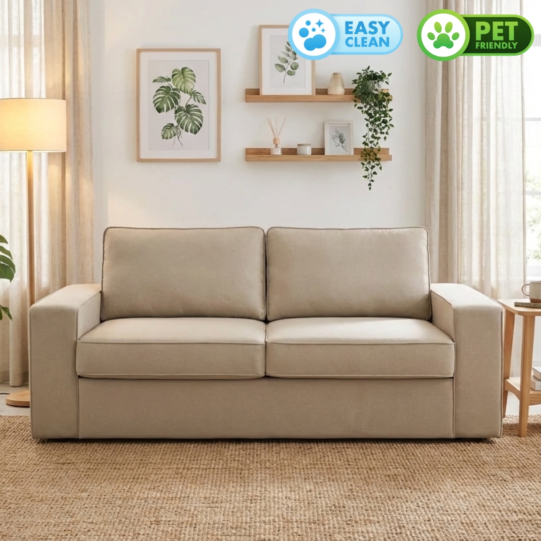 Experience luxury and comfort with the SERAPHINA 3-Seater Sofa! Crafted with anti-scratch, pet-friendly fabric, it’s perfect for pet owners. Enjoy wider armrests for ultimate relaxation and high-density foam that keeps you cozy. Redefine your living space with style and durability.