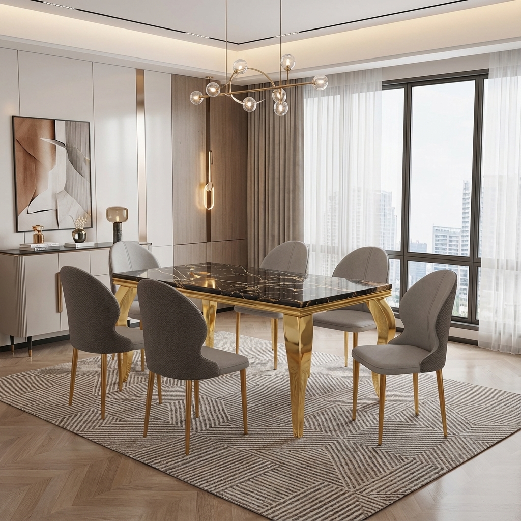 Categories: 6 seaters dining set, Contemporary style, Dining Set, Dining tables, Marble Table