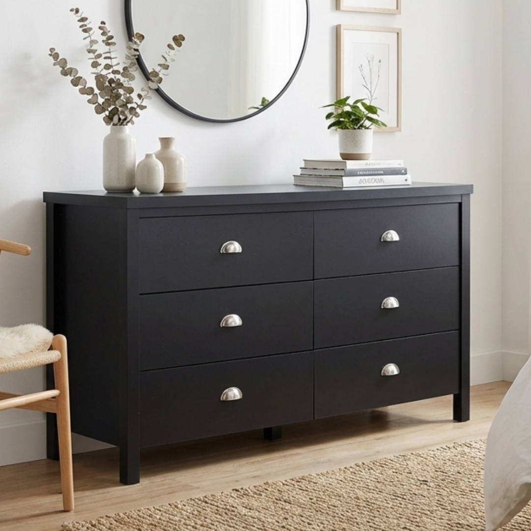 - SHERRY 6 Drawer Chest-Black