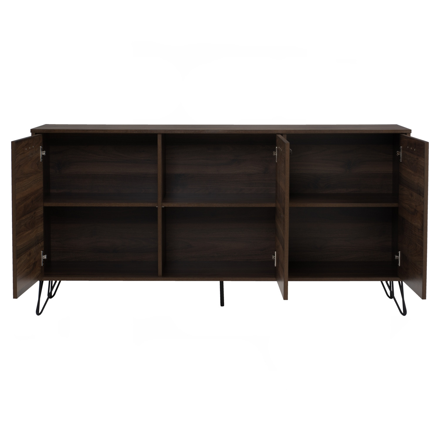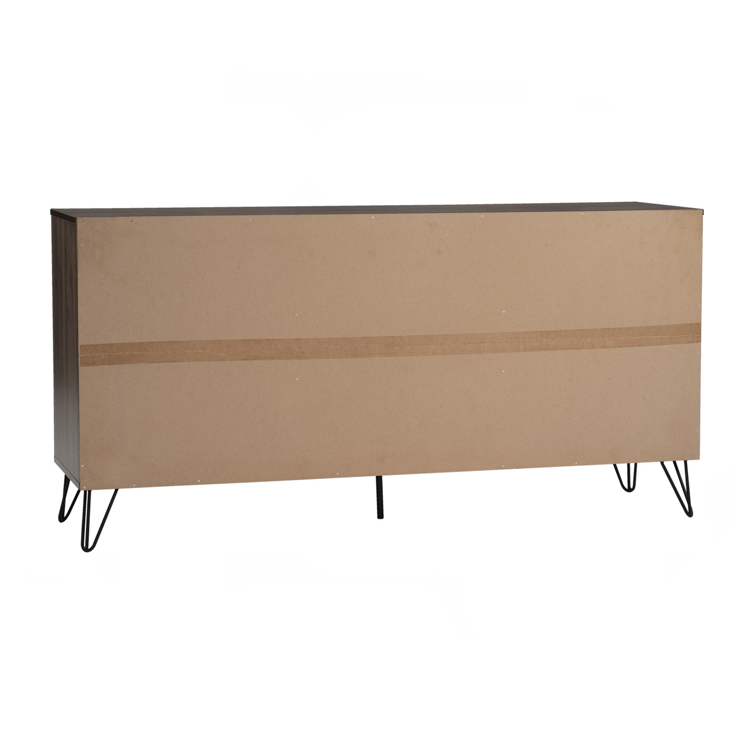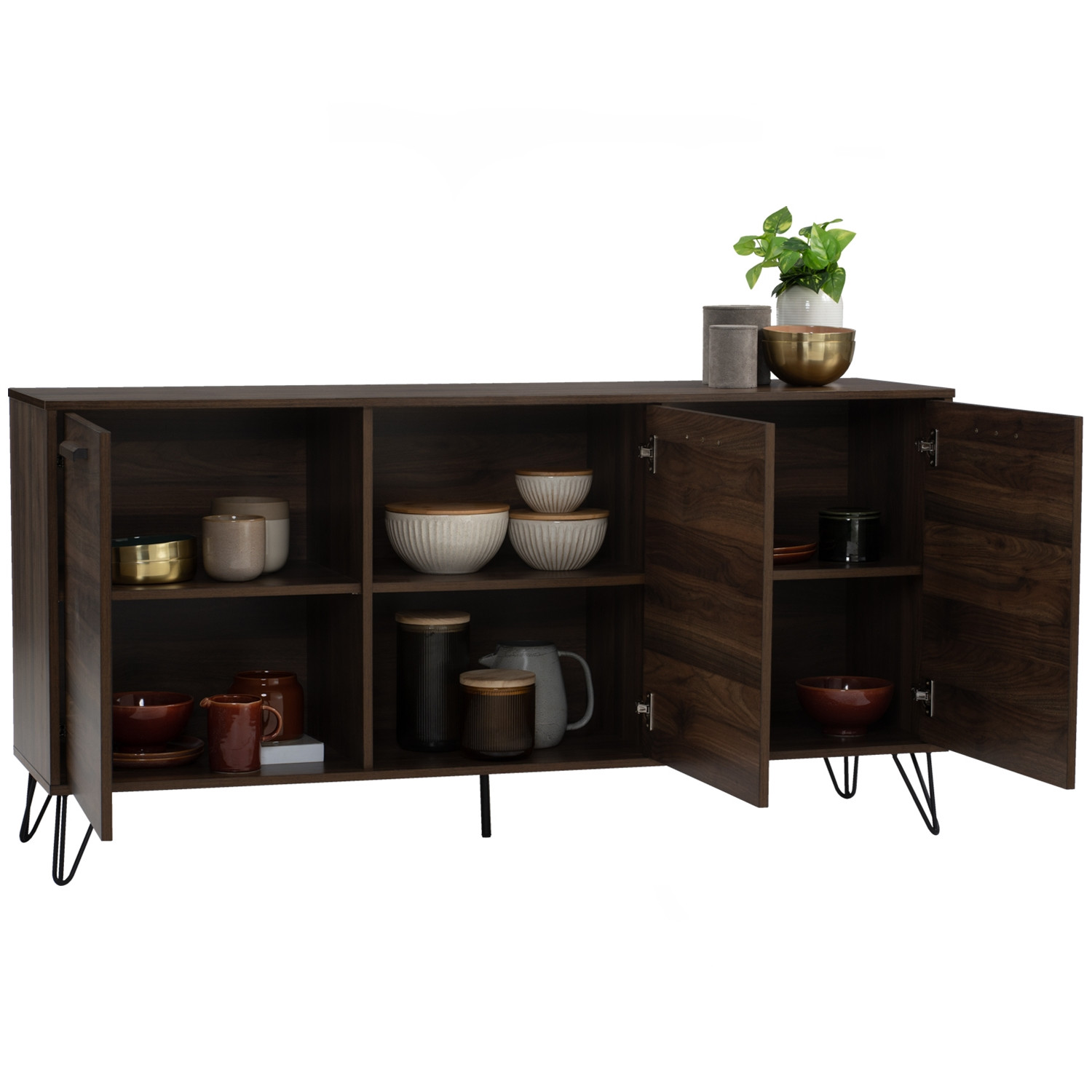 The SIMON 3-Door Sideboard combines function and style in one sleek design. Built with a particle board body and sturdy metal hairpin legs, it’s accented with natural wooden handles for a warm touch. With ample storage behind its 3 doors, it’s perfect for dining essentials or living room organization. Available in Oak and Walnut finishes.