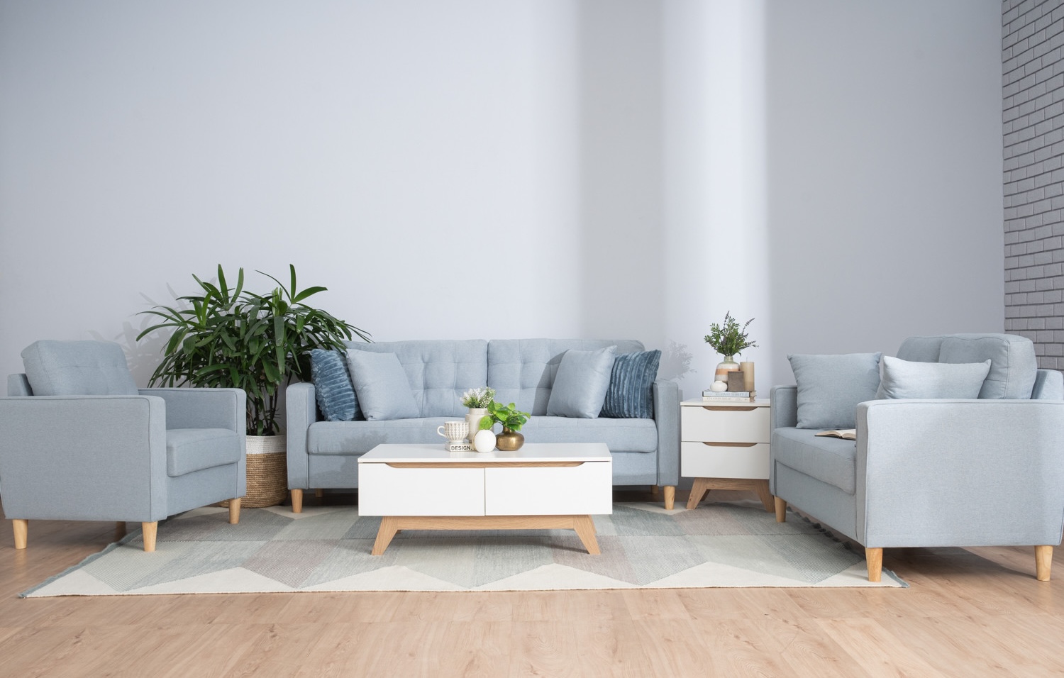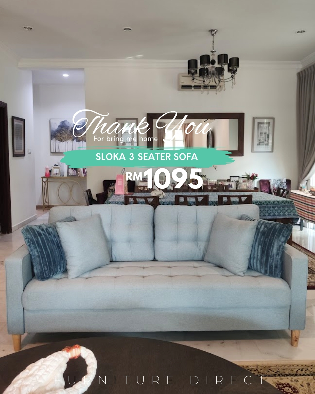 Sentuhkan keanggunan yang tenang pada kediaman anda dengan Sofa 3 Tempat Duduk SLOKA. Dibalut dengan fabrik warna biru perak (silver blue) yang menawan dan unik, sofa ini menjadi tumpuan sofistikated untuk mana-mana ruang tamu moden. Direka untuk relaksasi optimum, ia didatangkan lengkap dengan empat bantal kusyen padanan untuk meningkatkan keselesaan anda. Struktur sofa ini disokong oleh kaki kayu getah solid, menjamin kestabilan jangka panjang dan sentuhan kehangatan semula jadi. SLOKA adalah gabungan sempurna antara gaya, keselesaan, dan ketahanan.