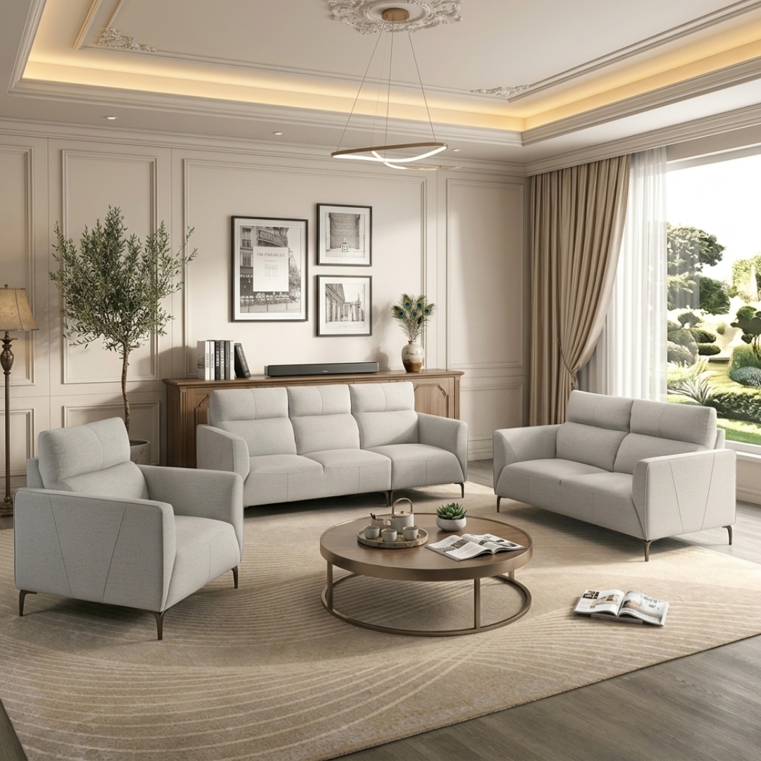 LAZIO L Shaped 3 Seater Fabric Sofa-Grey