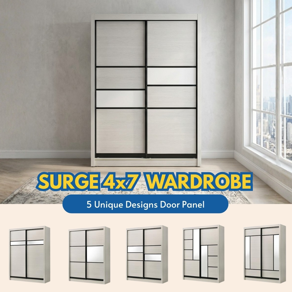 - SURGE 5X7 Sliding Door Wardrobe-White Wash