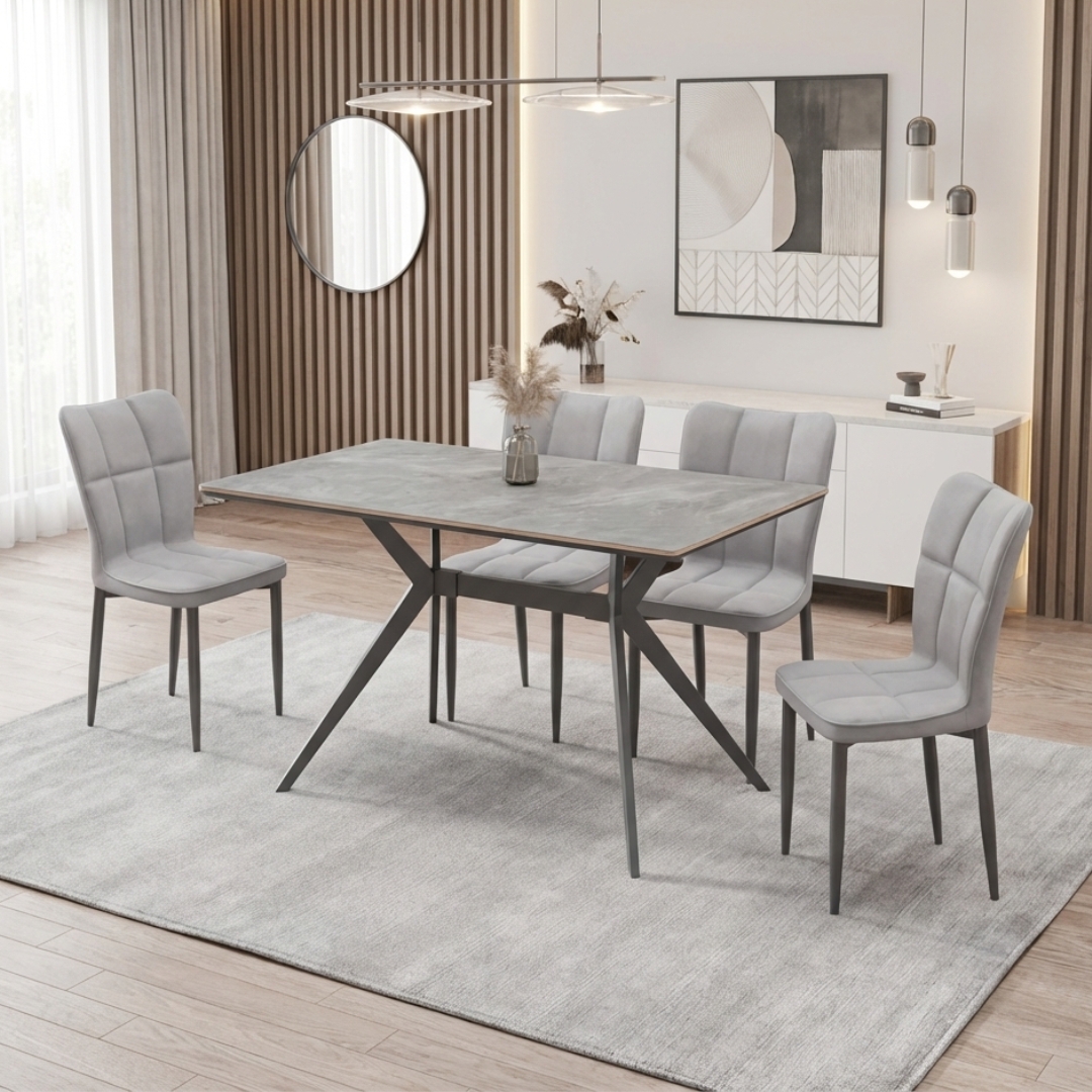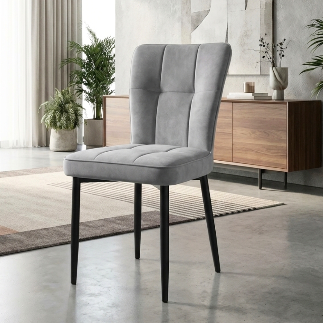 - SUTTON Velvet Fabric Dining Chair-Grey