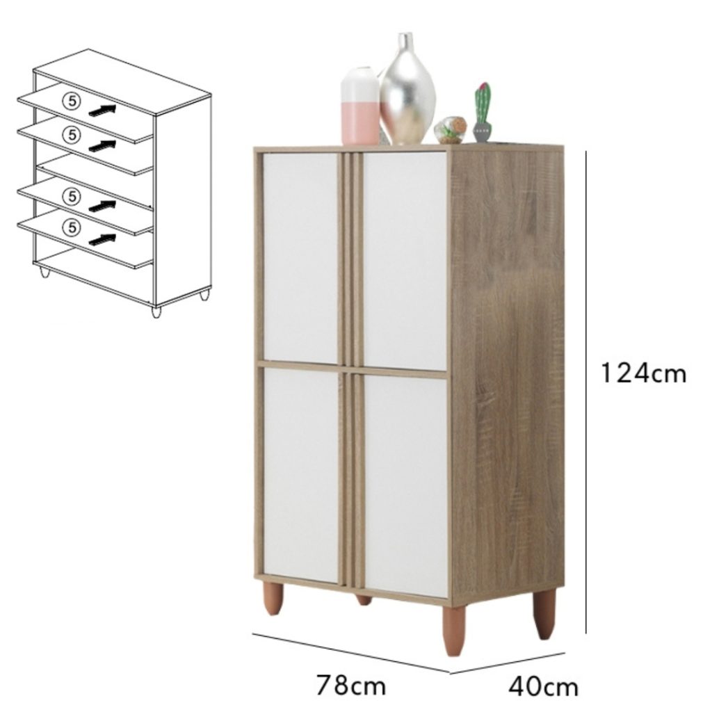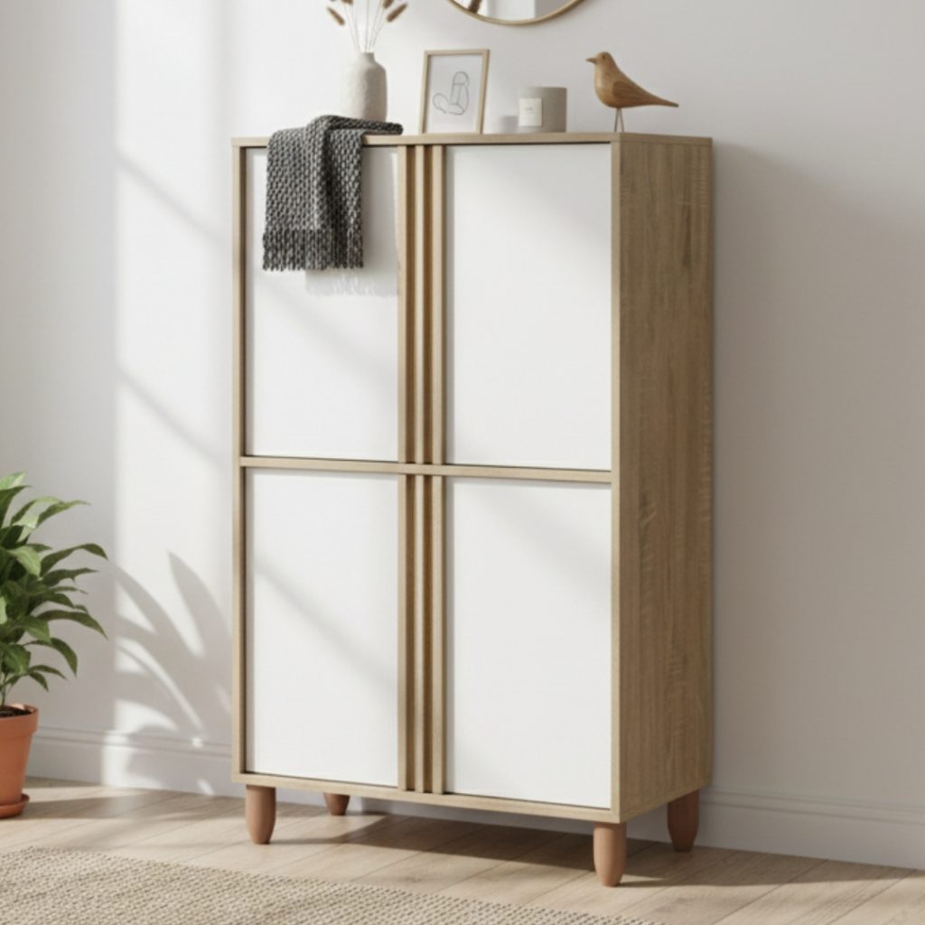 - OLIVER 4 Door Shoe Cabinet-Oak+White