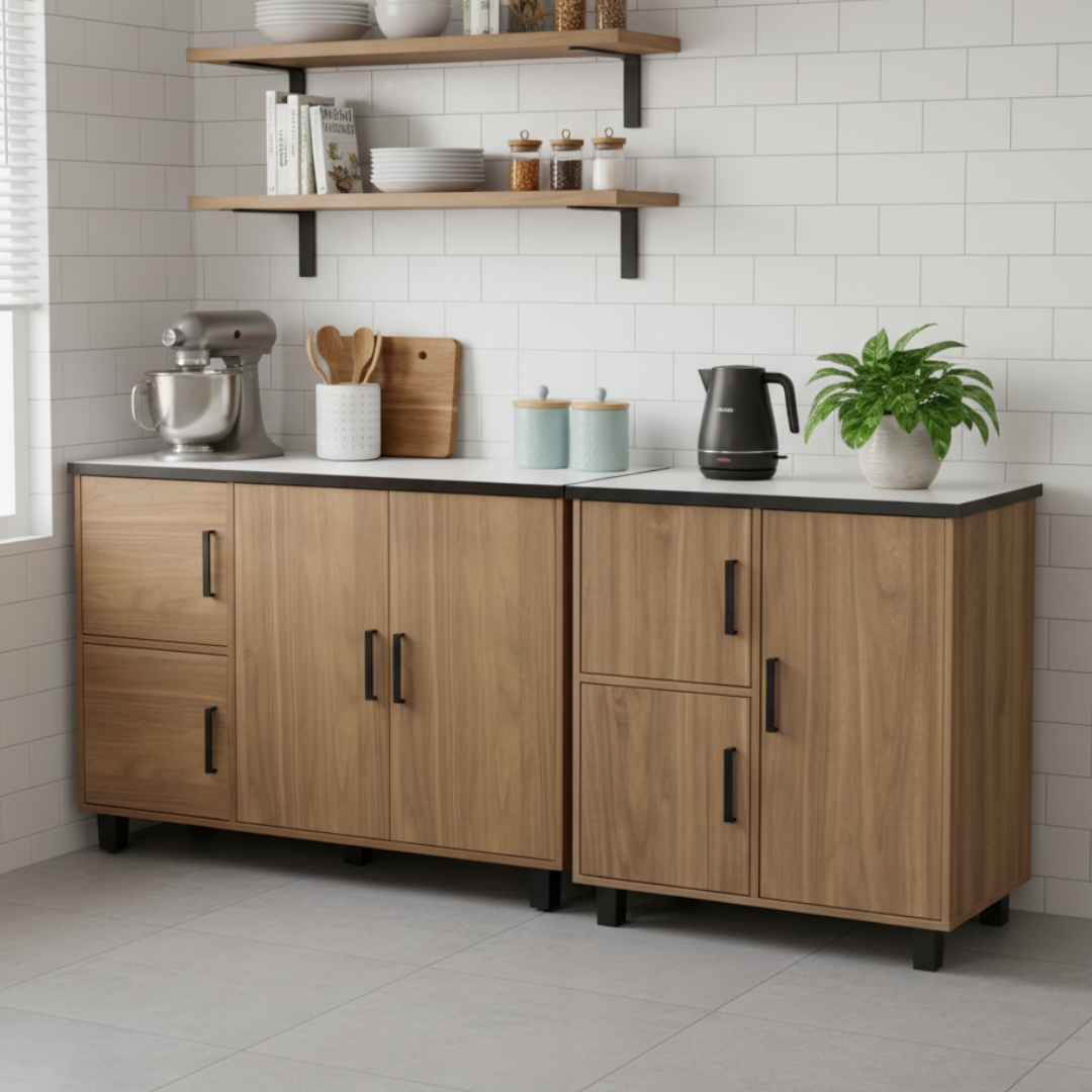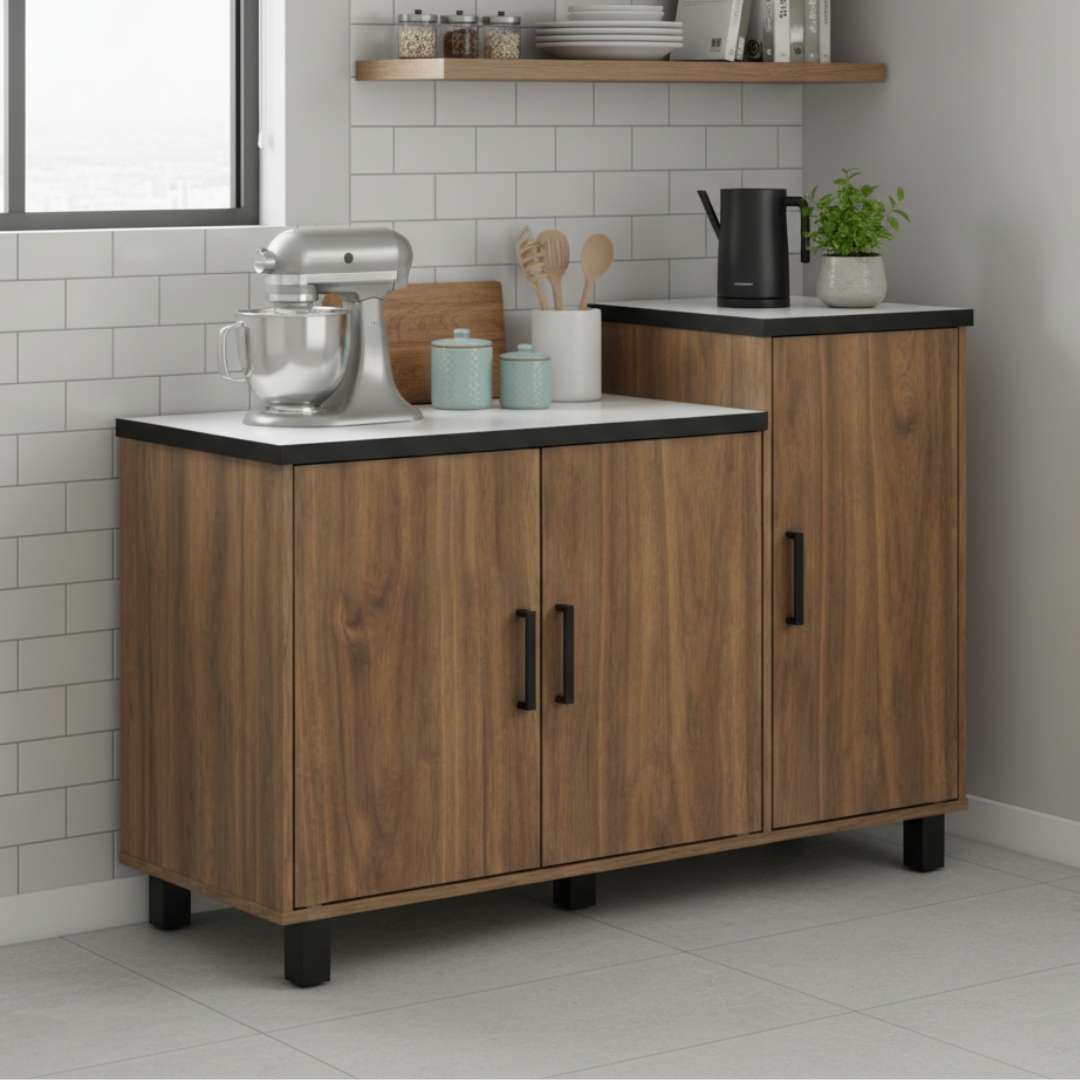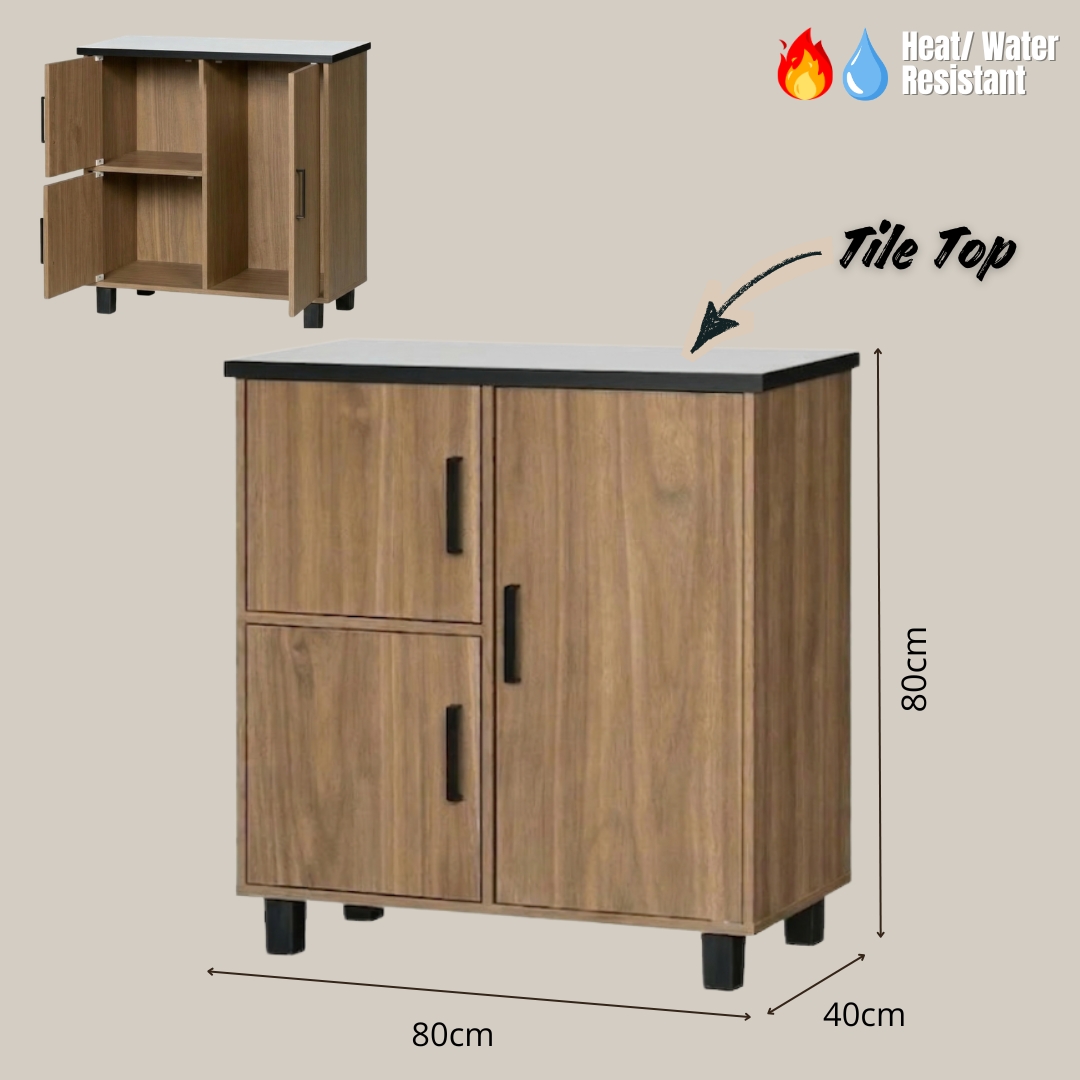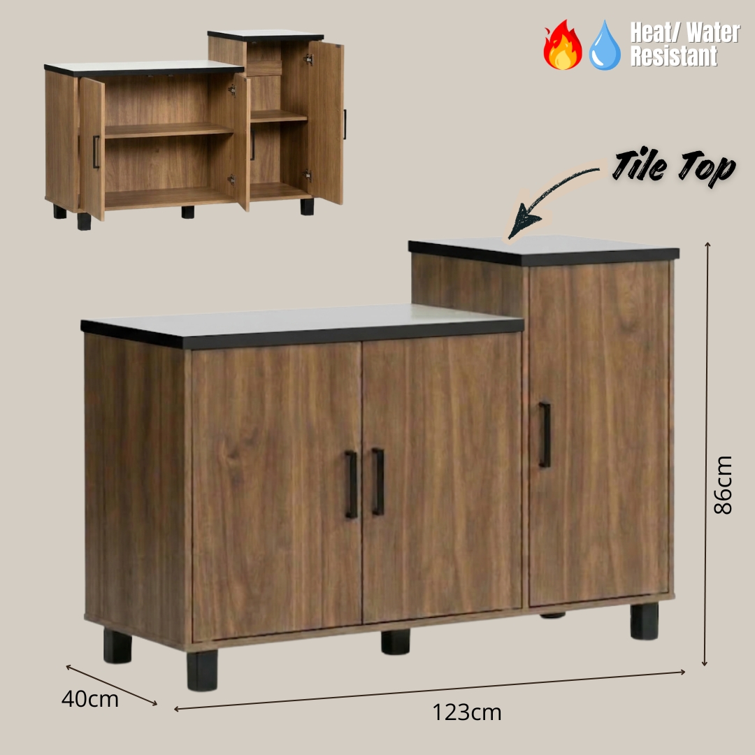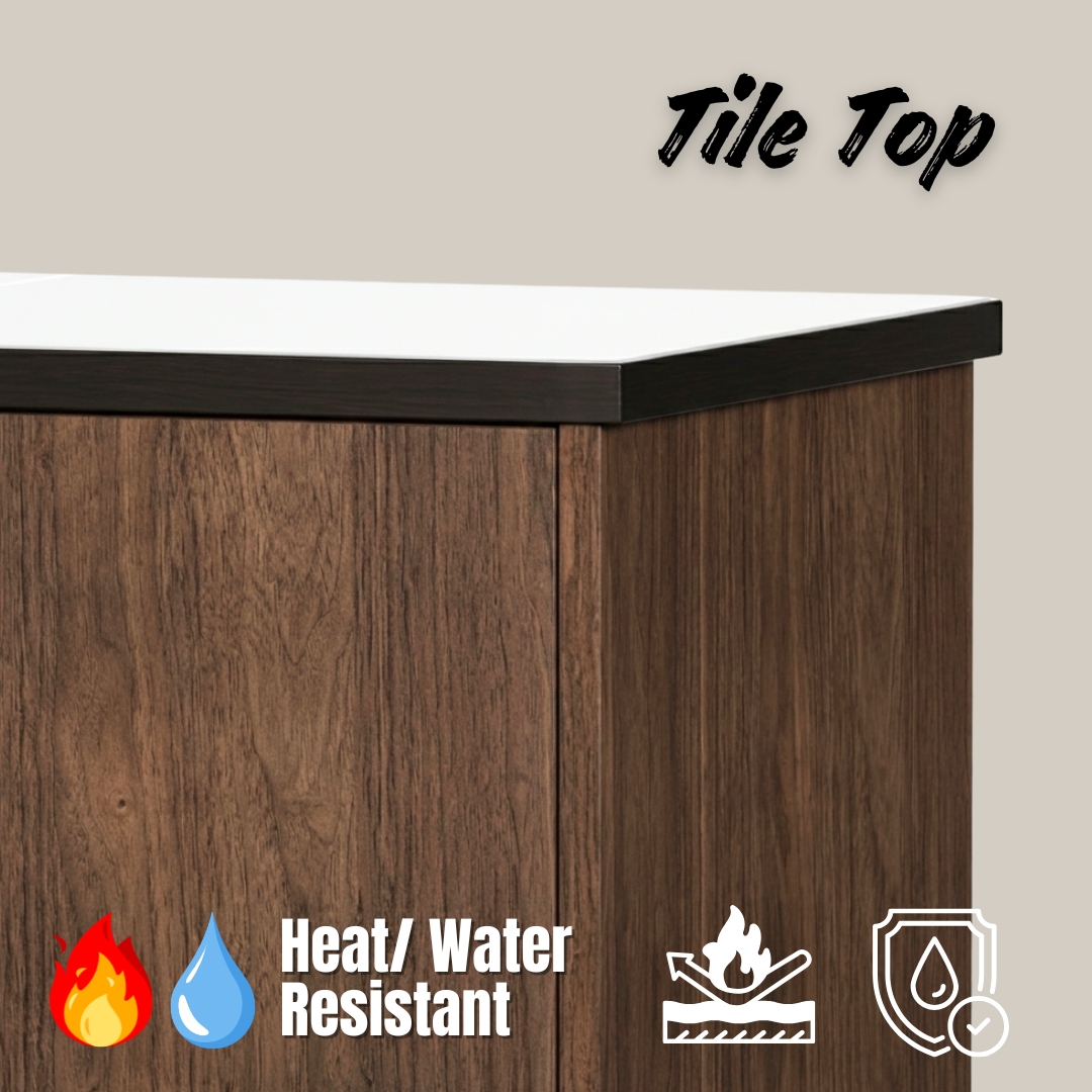 - TAVOLA Tile Top Modular Kitchen Cabinet-Walnut