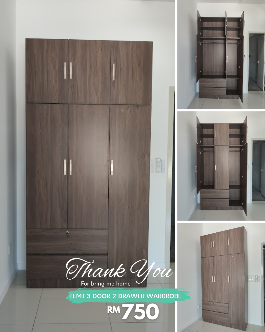 - TEMI 3 Door 2 Drawers Wardrobe
