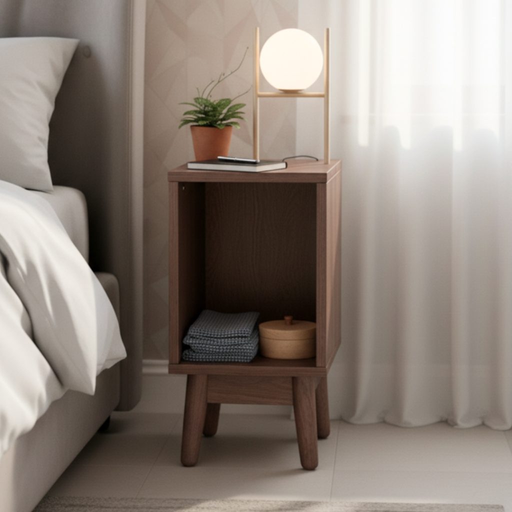 TRIGO Solid Wood Side Table With Metal Leg-Walnut