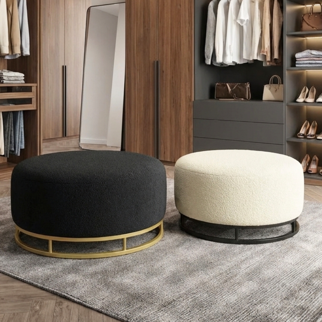 Make a statement of comfort and style with the TENLE Round Pouf Stool. With its generous D83cm oversized round shape, this pouf offers a spacious and luxurious seating experience. It is upholstered in ultra-soft fleece fabric, providing a cozy, high-fashion texture that invites you to relax. Supported by a sturdy metal base, it is built to withstand high-traffic environments while maintaining its elegant silhouette. Perfectly suited for boutique changing rooms, luxury shoe shops, or modern vanity areas, the TENLE stool combines chic aesthetics with commercial-grade durability.