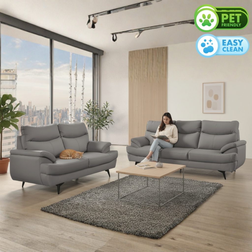 - TESSA 2+3 Pet Friendly PU Sofa Set-Grey