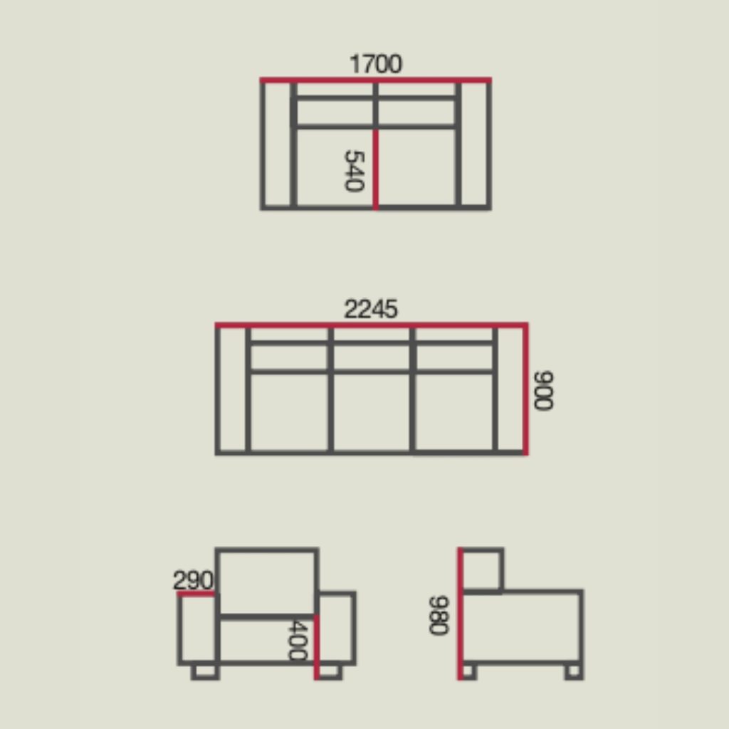 ATIVO 3 Seater Solid Wood Sofa-Grey