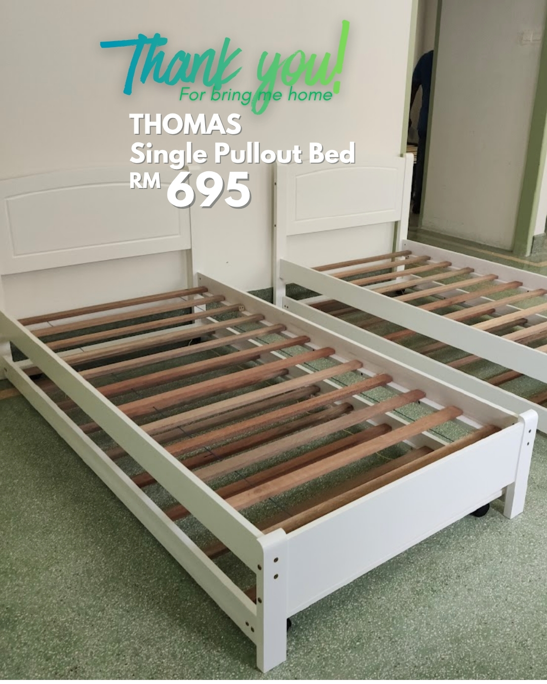 Katil Tarik Saiz Bujang THOMAS diperbuat daripada kayu getah padu dengan MDF berkemasan cat, kukuh dan bergaya. Asas papan kayu keras yang kukuh memberikan ketahanan lebih baik. Reka bentuk tarik keluar menjimatkan ruang, dengan tilam bawah sesuai untuk ketebalan maksimum 5 inci. Pilihan praktikal untuk bilik kanak-kanak, rumah kecil atau bilik tetam