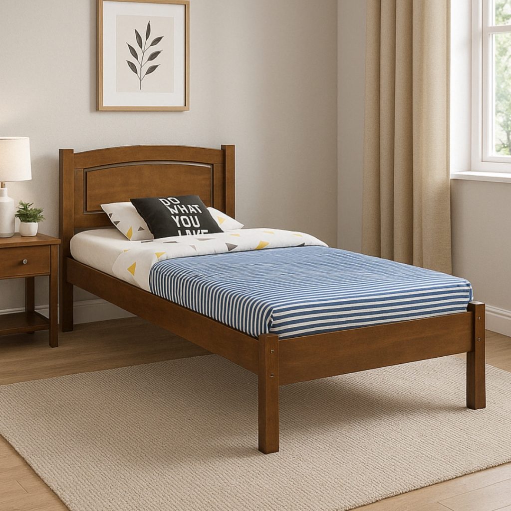 THOMAS Super Single Wooden Bed Frame-Walnut