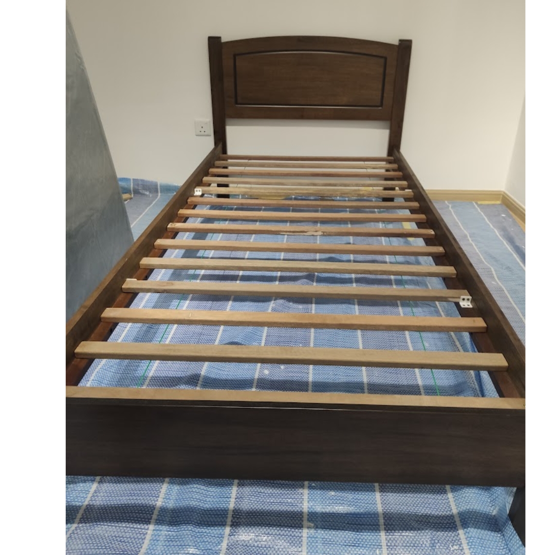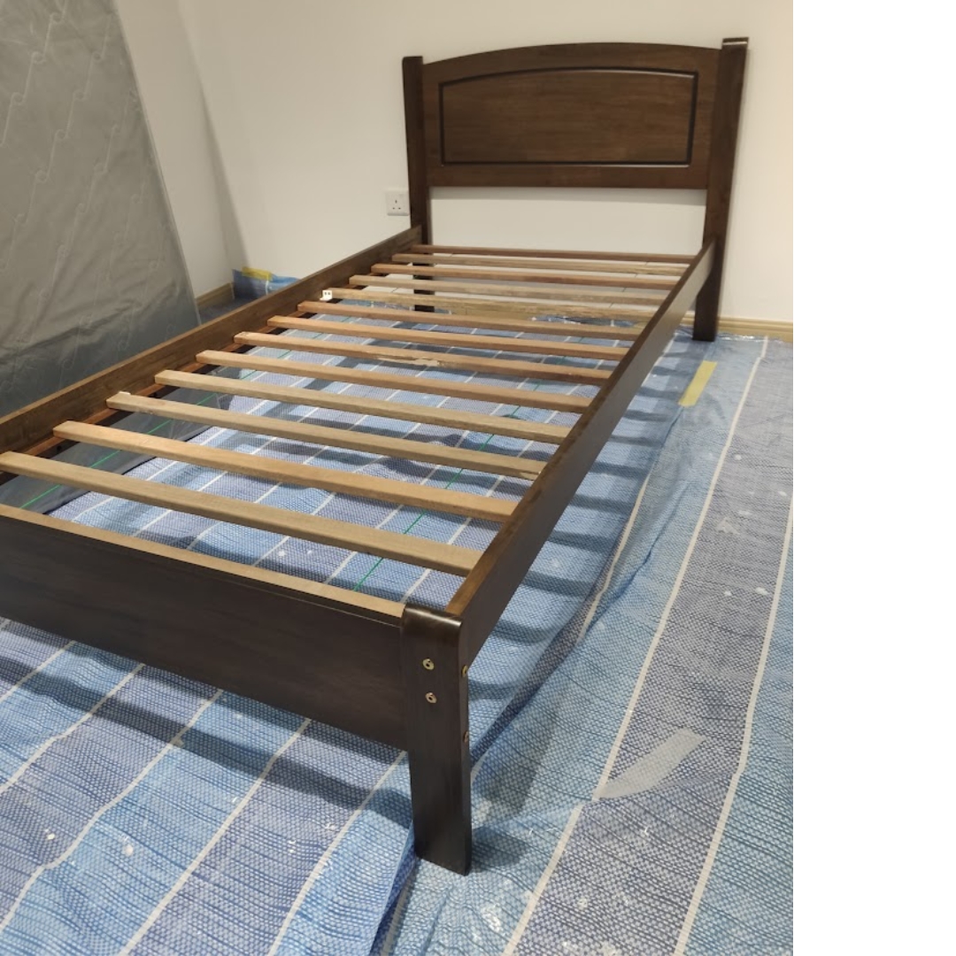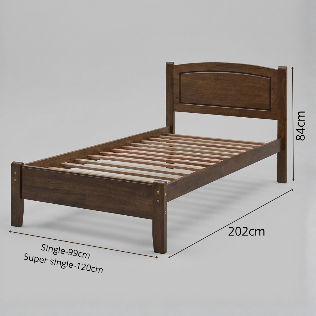 THOMAS Single Size Solid Wood Bed Frame-Walnut