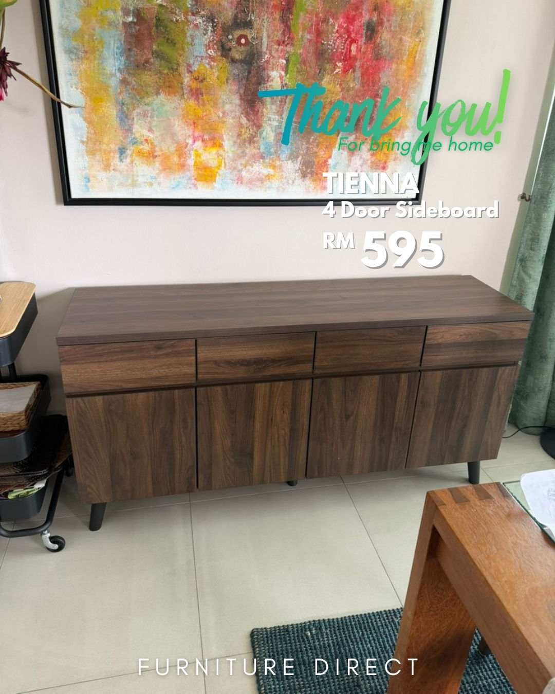 Tingkatkan solusi penyimpanan anda dengan TIENNA 150cm Multipurpose Storage Sideboard! Dibuat dari papan zarah tahan lama, sideboard ini memiliki empat laci dan empat pintu, menawarkan ruang simpanan yang luas untuk pelbagai keperluan. Kaki plastik kalis air memastikan ketahanan dan kemudahan penyelenggaraan. Tersedia dalam warna putih yang chic dan walnut klasik, TIENNA sideboard dengan mudah menyatu dengan gaya hiasan apa pun, memberikan fungsi dan keanggunan ke ruang anda. Sempurna untuk mengatur keperluan di mana-mana bilik, jadikan ini keutamaan di rumah anda hari ini!