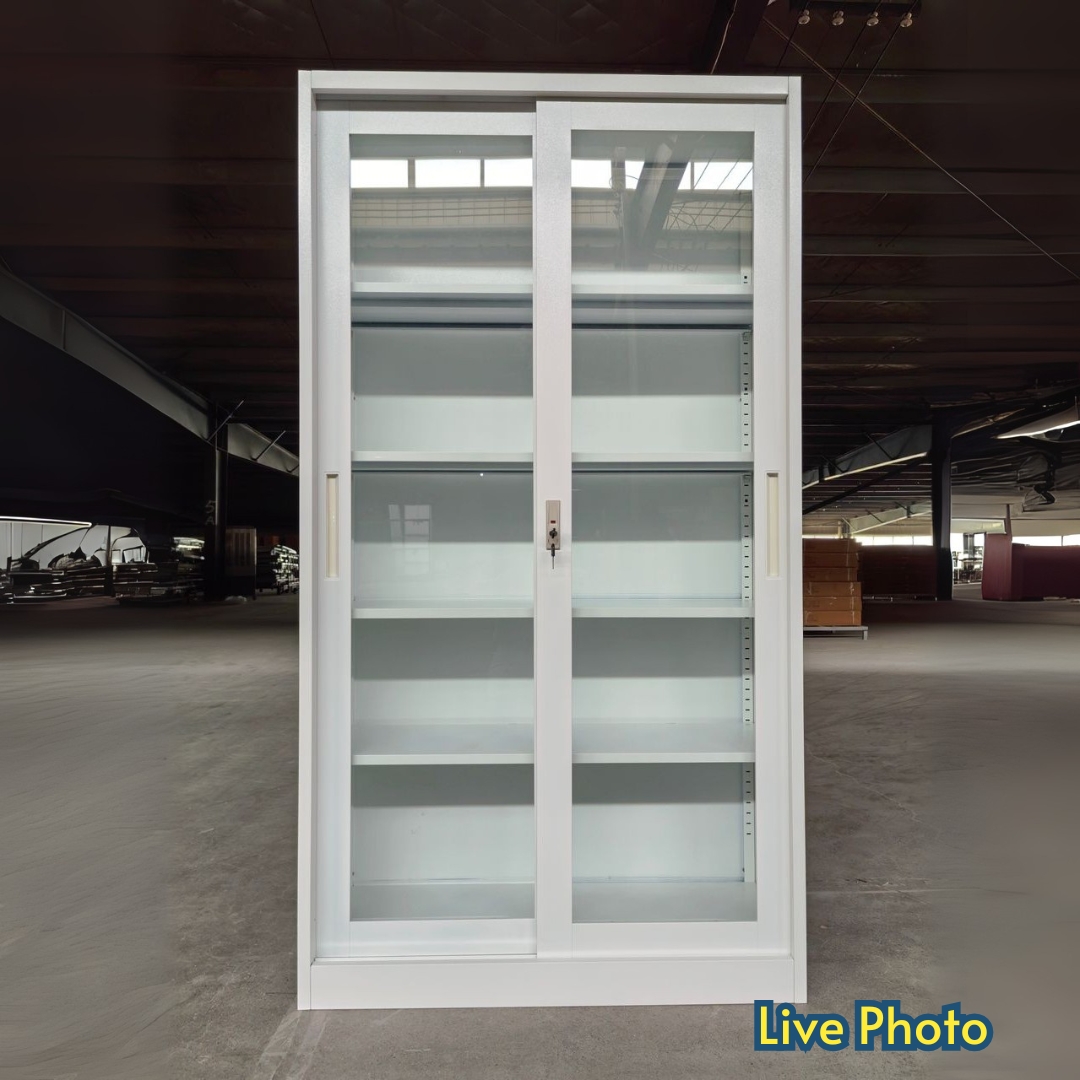 TIOLA 双滑门全钢文件柜,采用防白蚁全钢材质,坚固耐用。配有双玻璃滑门和钥匙锁,保障物品安全。内置可调节层板,灵活收纳文件、书籍或办公用品,适合家庭及办公场所使用。