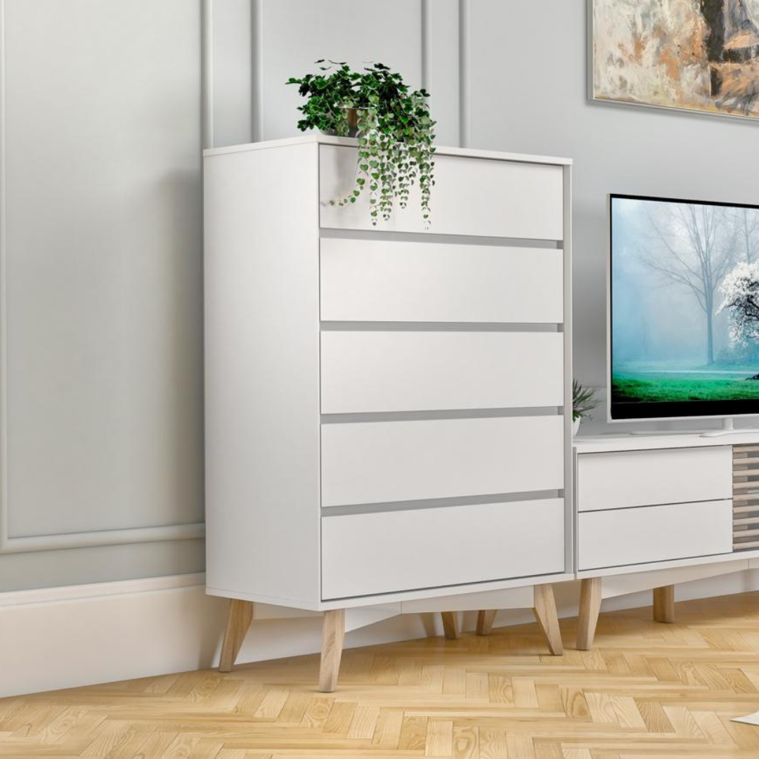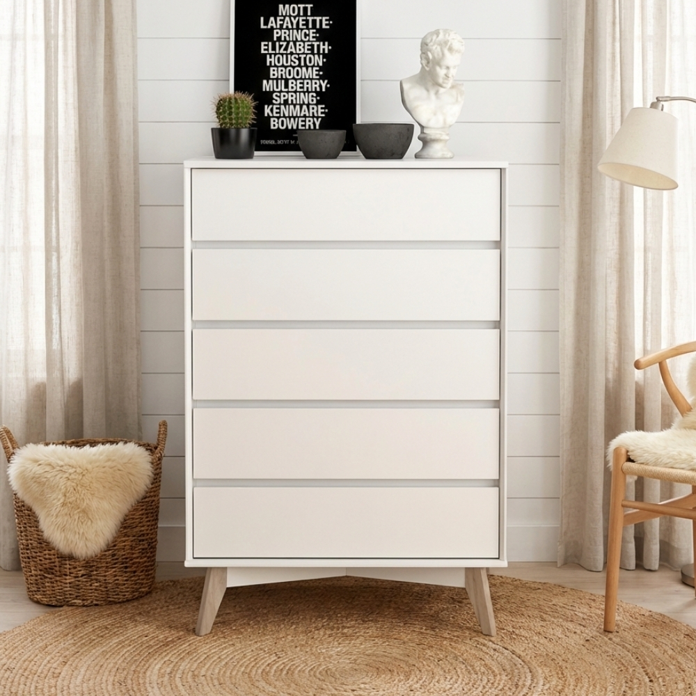 CELENA Solid Wood 5 Drawer Chest-Natural