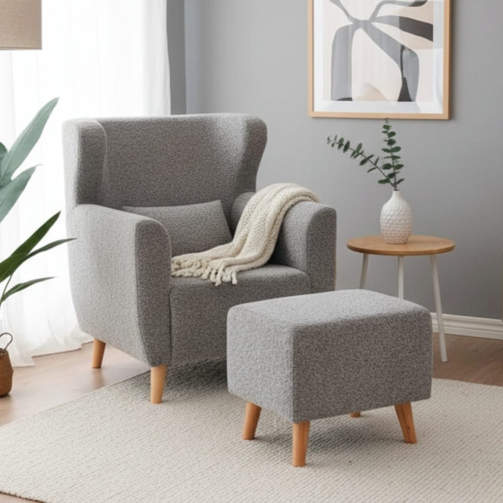 - TOJOLA Fleece Fabric Lounge Chair With Stool