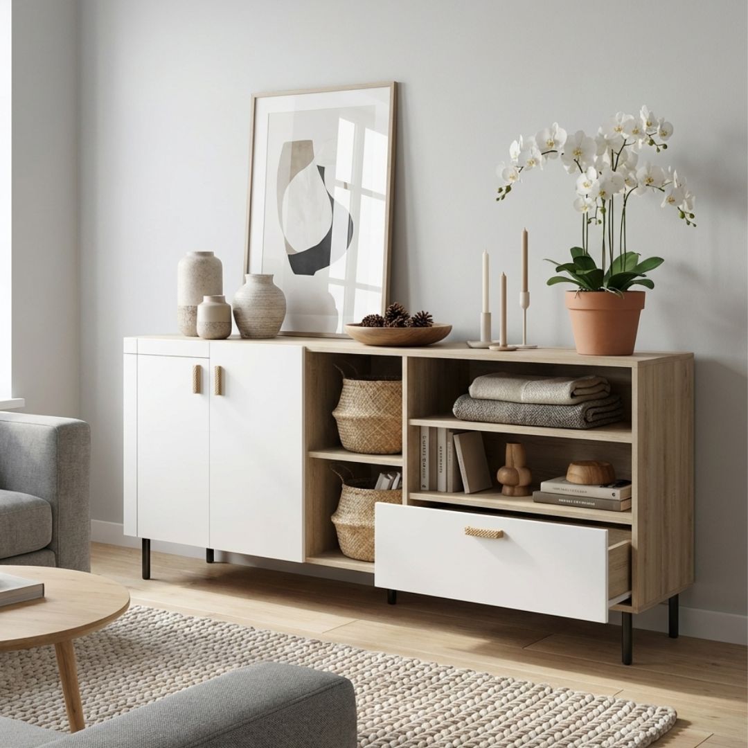 TOSCANA 150cm Sideboard-Oak+White