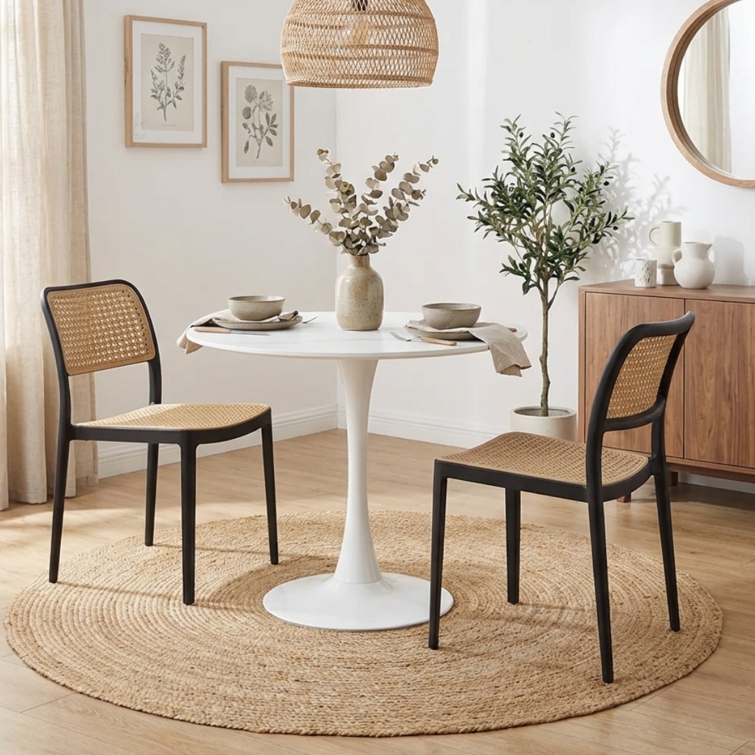 Introducing the TULIP 2-Seater Dining Set, featuring a marble-look sintered table top and easy-maintenance plastic chairs. This elegant set combines modern design with practicality, making it perfect for any dining space. The durable table top and low-maintenance chairs ensure long-lasting beauty and convenience. Enhance your dining experience with the stylish and functional TULIP dining set, ideal for both casual and formal settings.