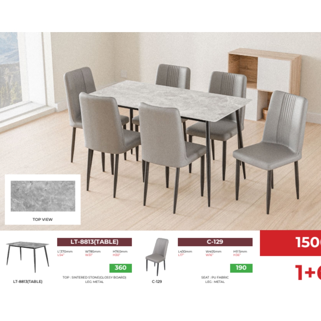 - VELENTINA 6 Seater Sintered Stone Dining Set-Grey