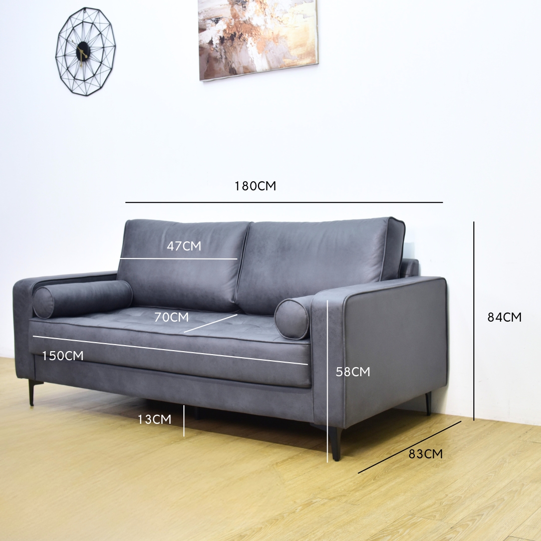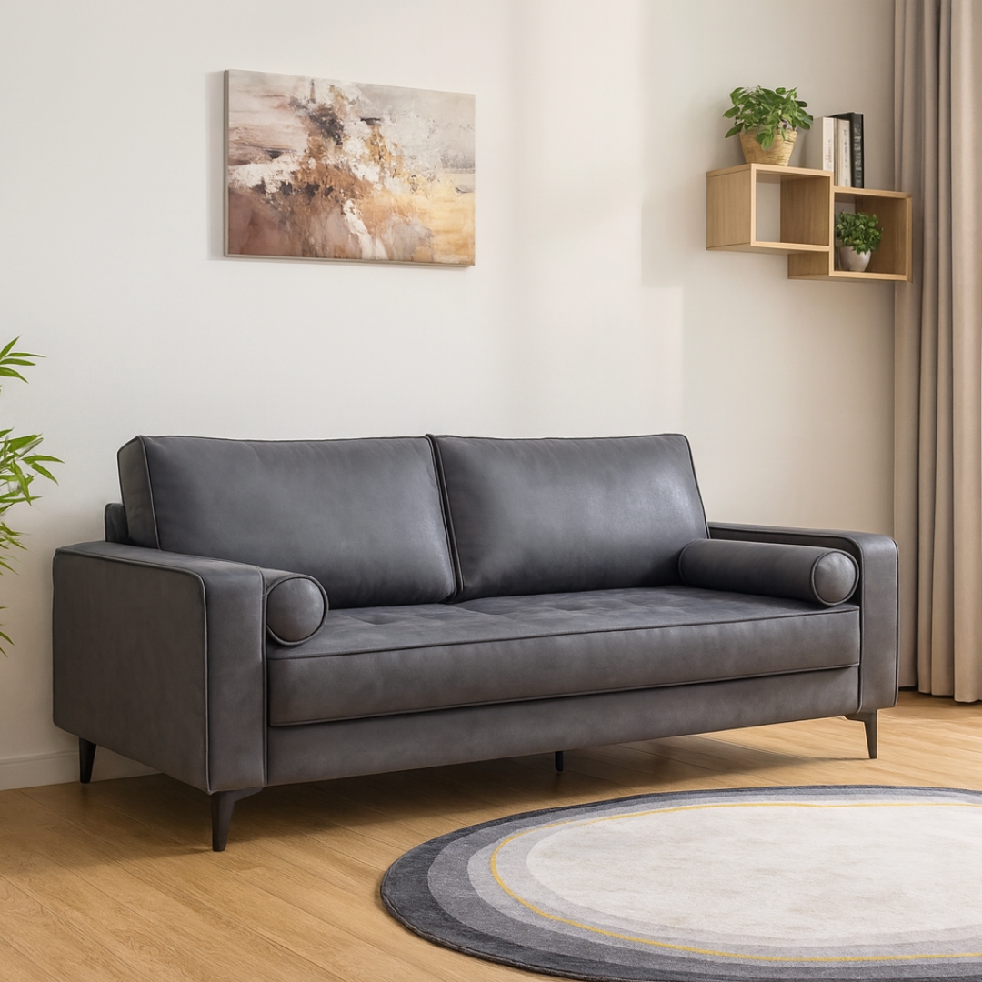- VELOZ 3 Seater Synthetic Fabric Sofa -Grey