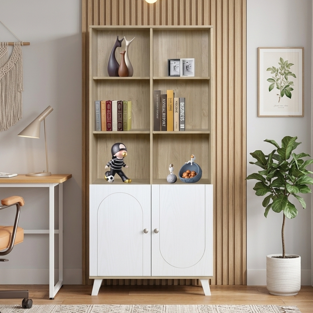 VETTA 2 Door High Bookcase-Oak+White