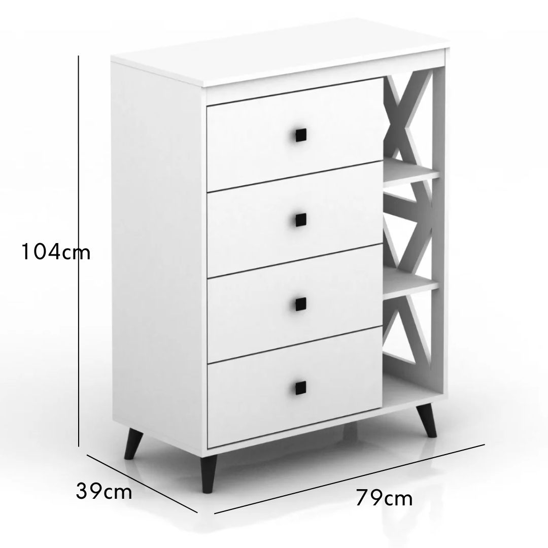 VILINDA 4 Drawer Chest Sideboard-White