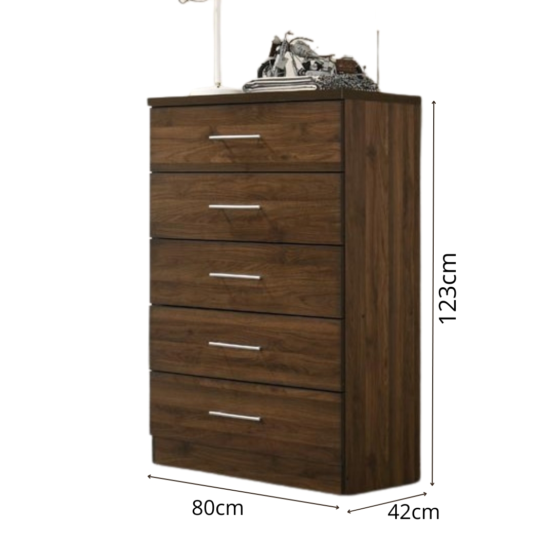 CELENA Solid Wood 5 Drawer Chest-Natural