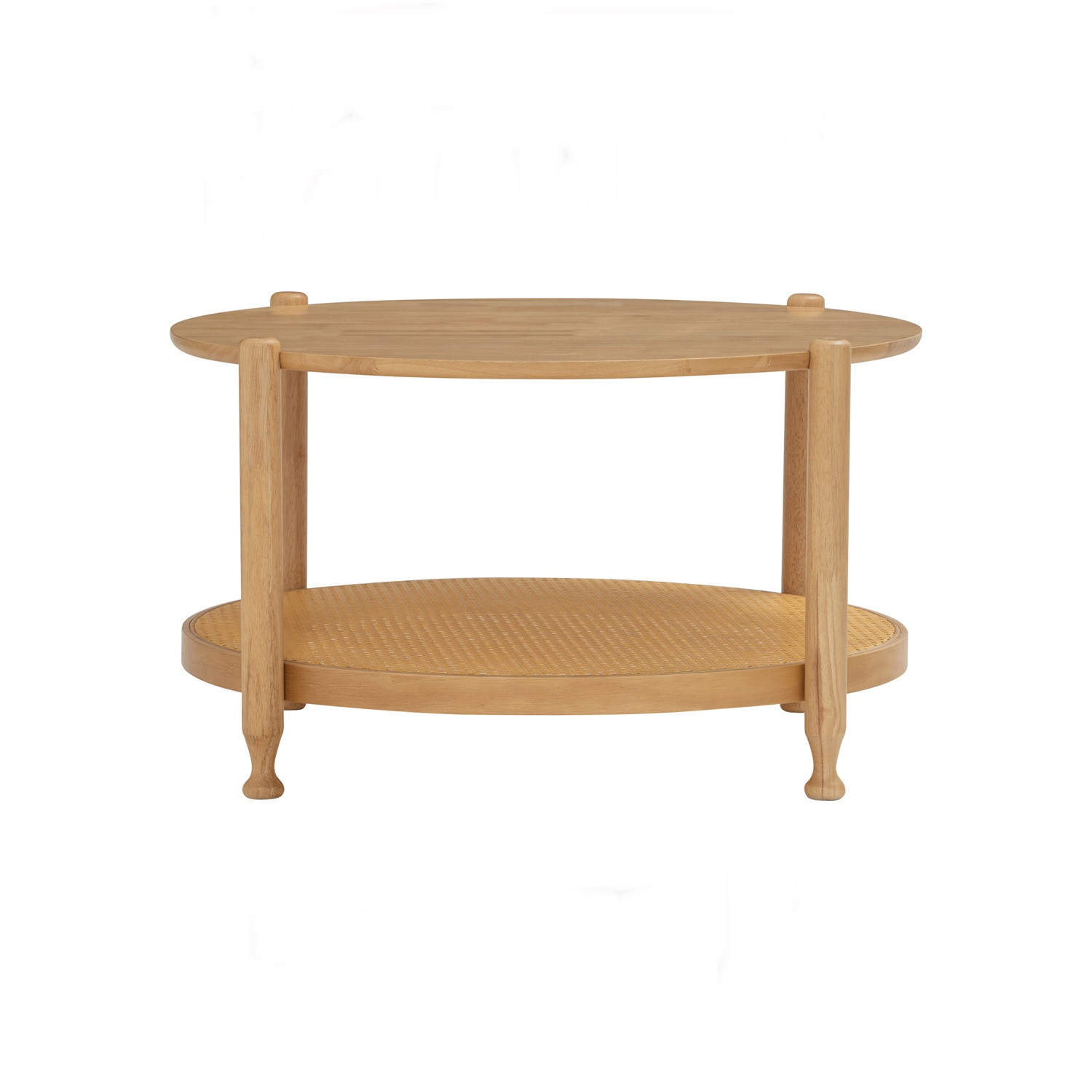 Add a touch of organic elegance to your living room with the WELDON Full Solid Wood Coffee Table. Featuring a graceful oval-shaped tabletop and a practical bottom shelf with rattan features, this table perfectly blends texture and function. Crafted from high-quality solid wood for lasting durability, it is available in two stunning finishes: bright Oak for a Scandi-vibe and deep Cocoa for a more classic look.