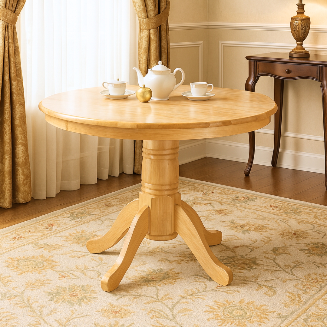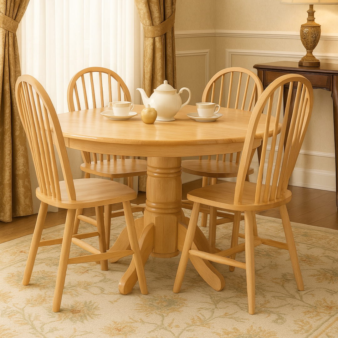 - WINDSOR 4 Seater Solid Wood Round Dining Set-Natural