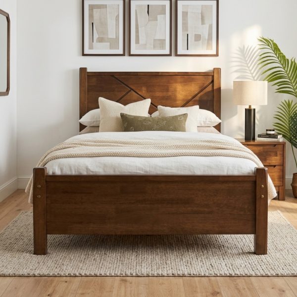 ALEXANDER Solid Wood Queen Size Bed Frame-Walnut