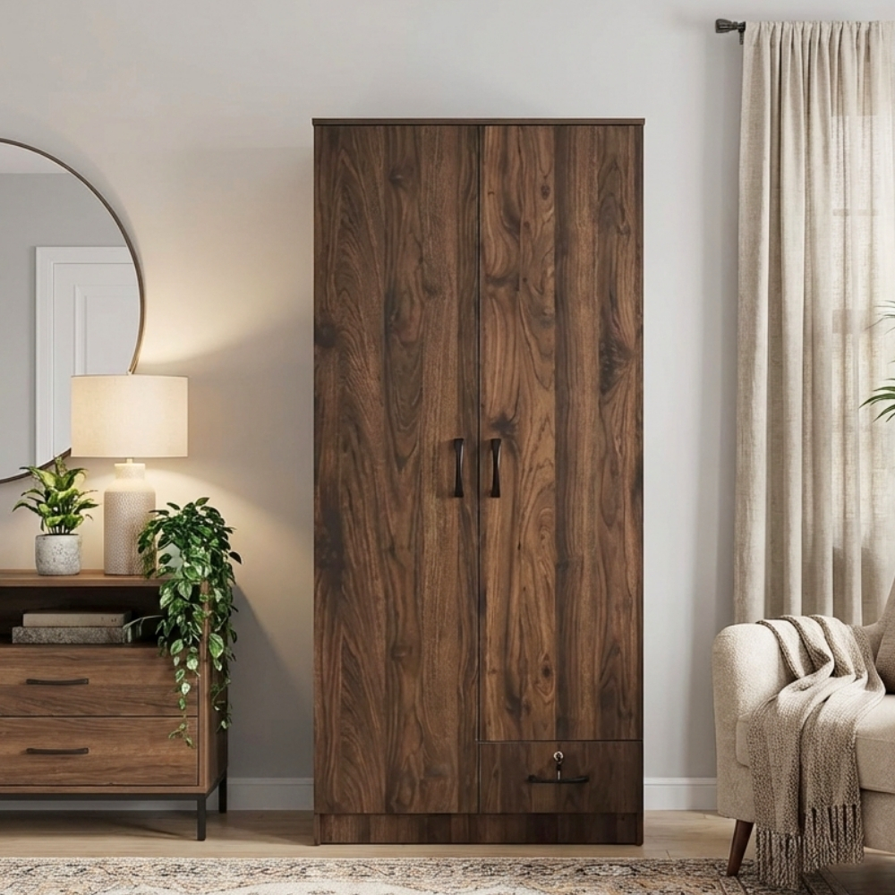 - WR 6032 2 Door 1 Drawer Wardrobe-Walnut