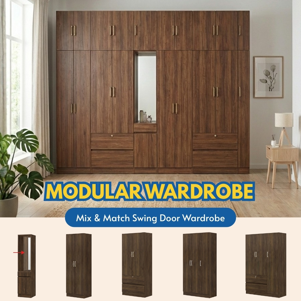 ZENITH Modular Swing Door Wardrobe-Walnut