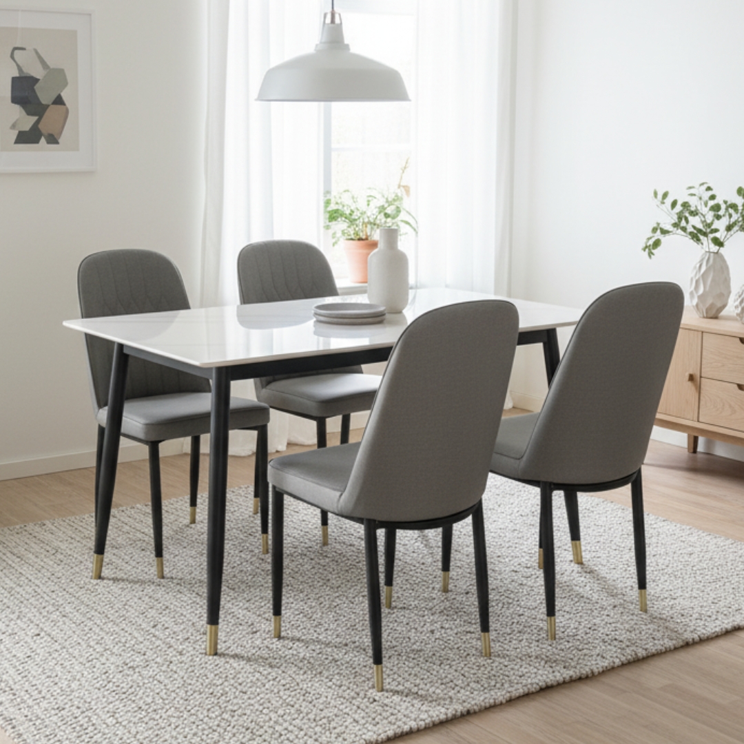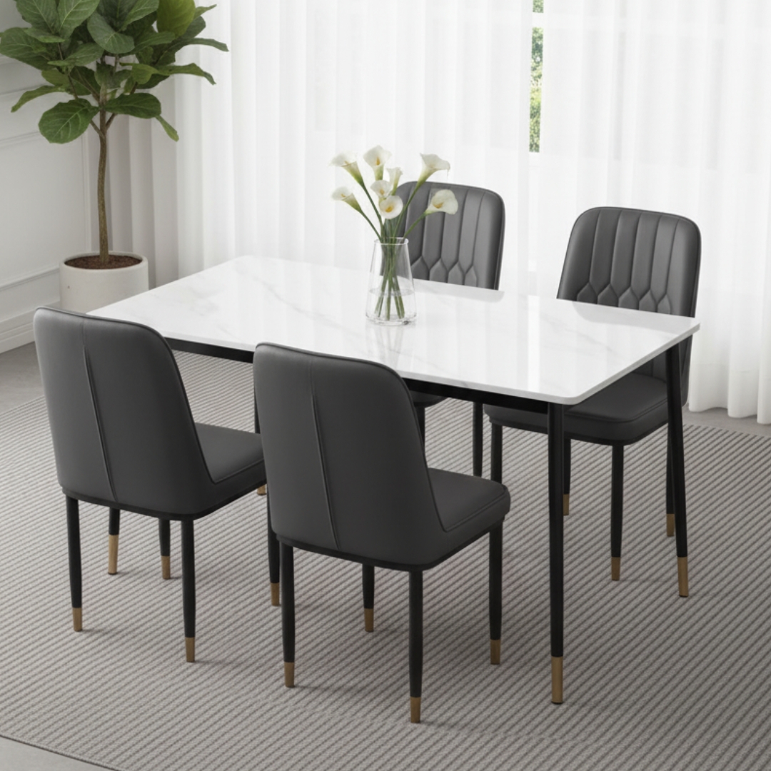 - ZINOVIA Sintered Stone 4 Seater Dining Set-White