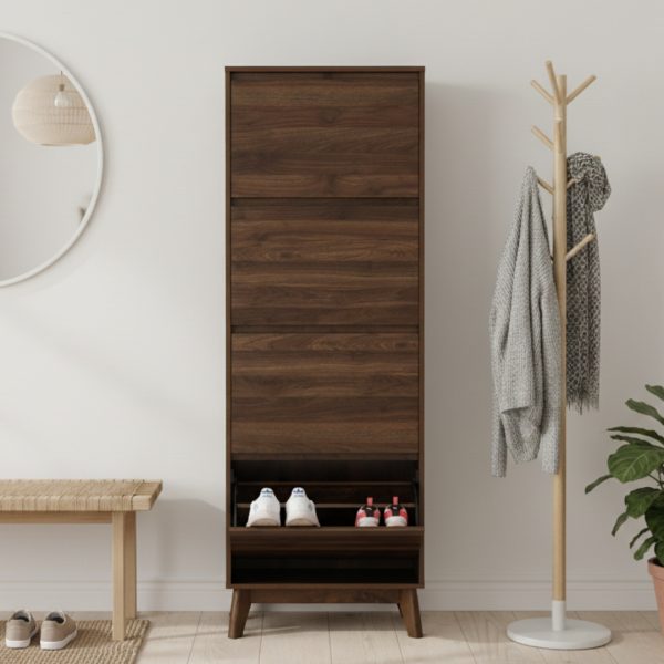 HIRANO Tall 4 Flip Door Shoe Cabinet-Walnut
