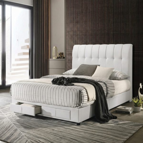 LUSSON Queen & King Size Drawer Bed Frame-Cream
