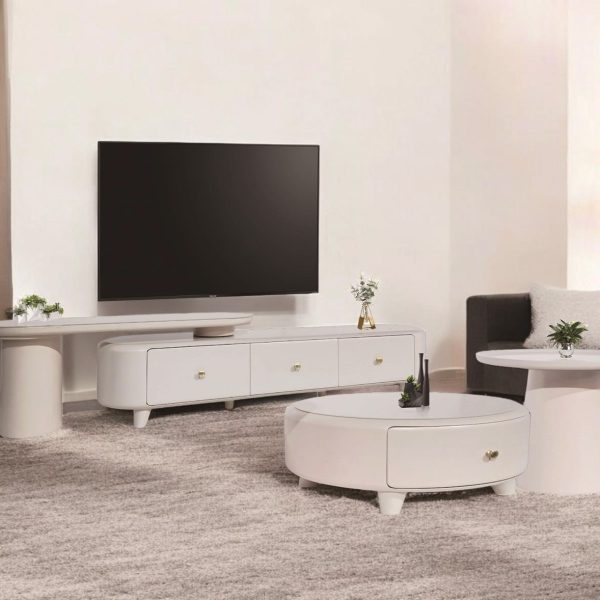 Original price was: RM 5,295.00.RM 2,950.00Current price is: RM 2,950.00.33122 220cm Glass Top TV Cabinet – White Beige